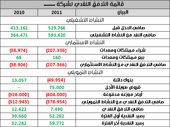 The cash flow statement is an accurate financial report that shows the movement of cash in and out of a particular company during a specific period of time, stemming from the economic, operational, financing, and investment activities undertaken by the institution. This statement highlights all financial transfers and expenses incurred by management to implement and complete its commercial and investment activities .